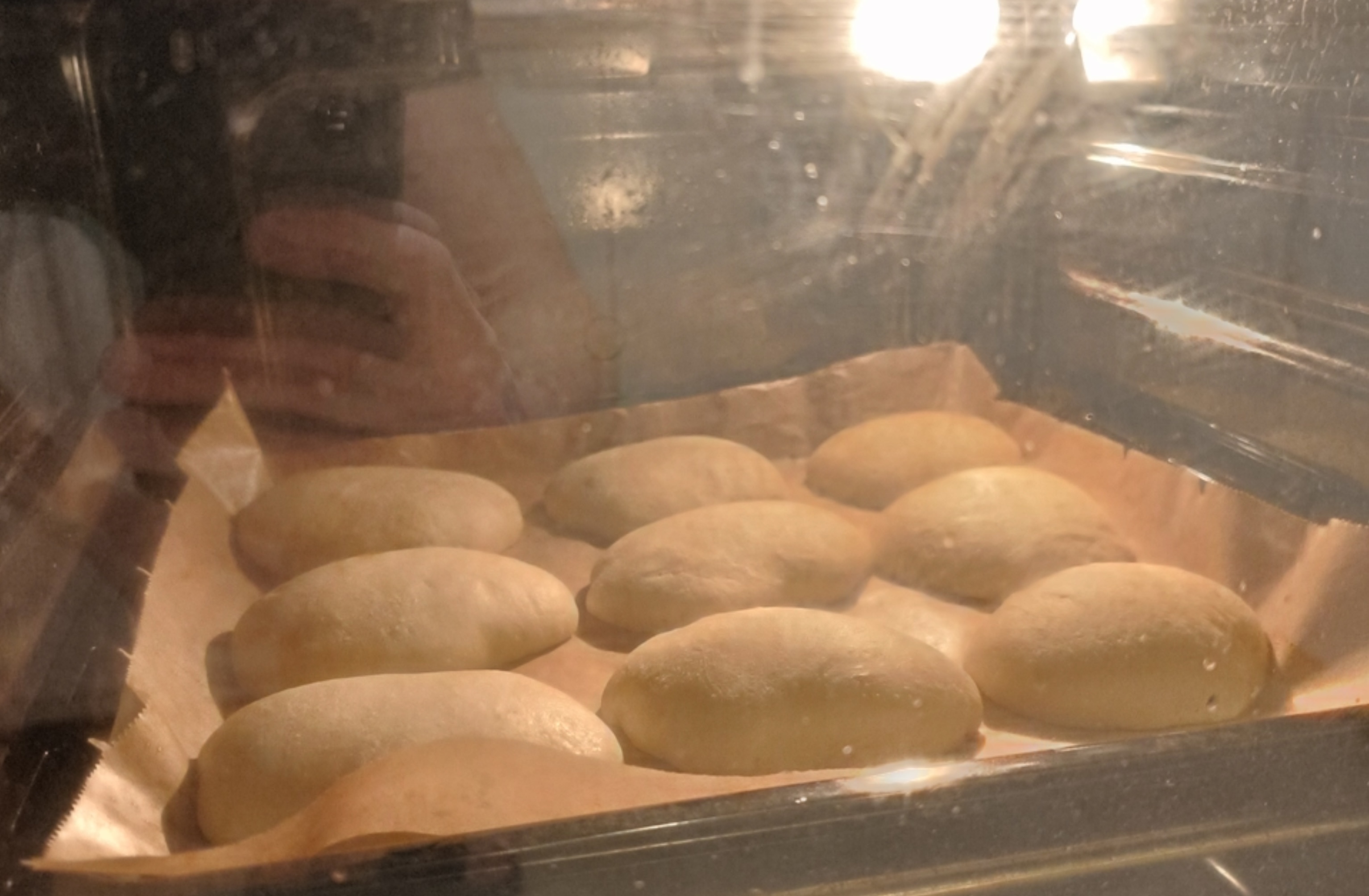 By now, the buns should not be kind of gnarly anymore. Their surface should have become kind of smooth.