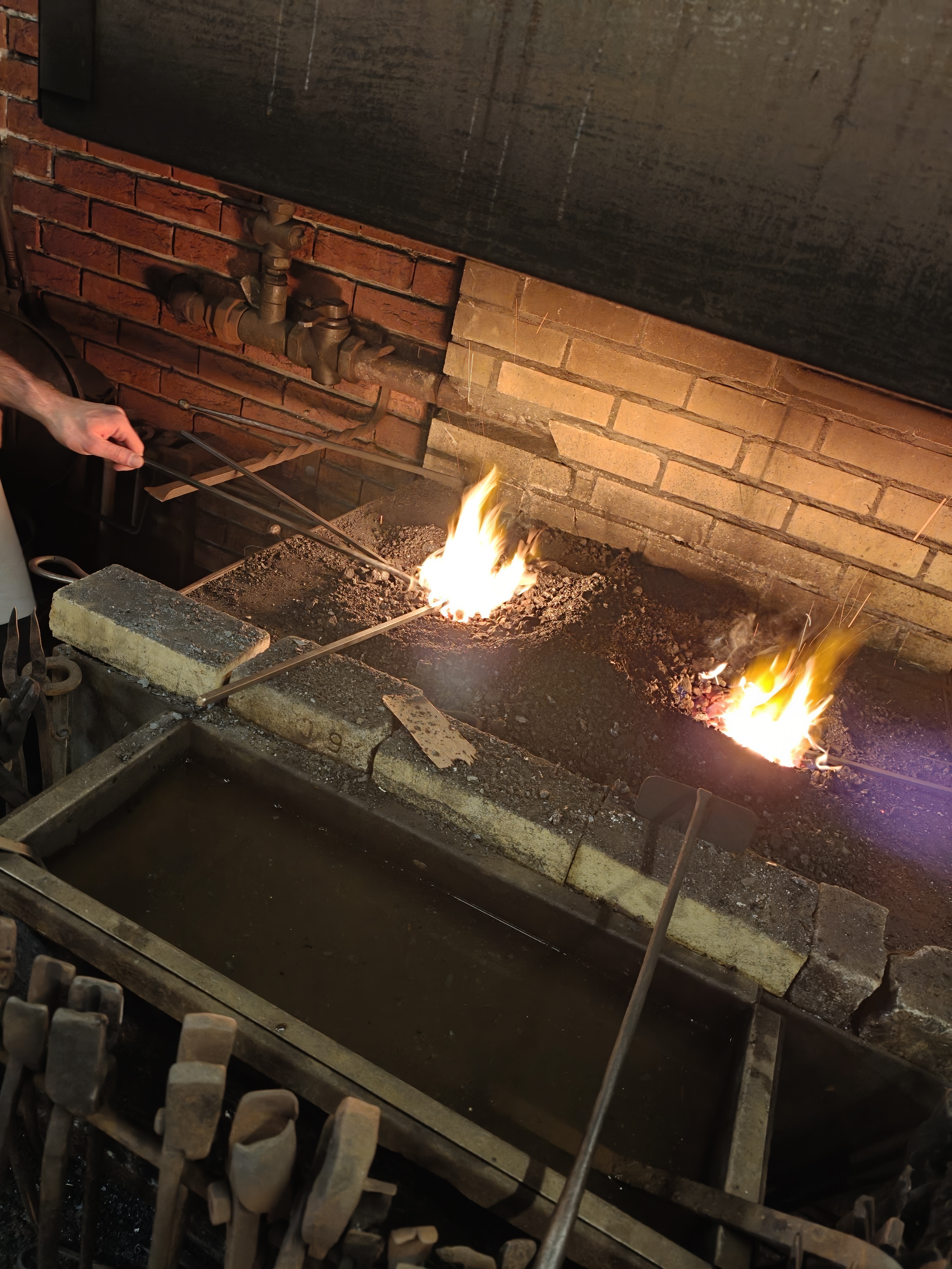 The workshop was very much hands-on. Not a lot of theorizing. They showed us how to start the coal and gas forges and how to work them. I, being a loudmouth, started asking questions about the gear and the bearded gentleman told me: "I've been using this hammer for 40 years. It's a good one."