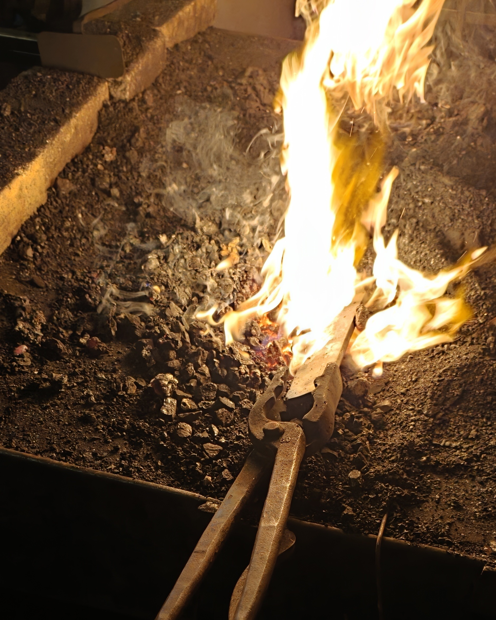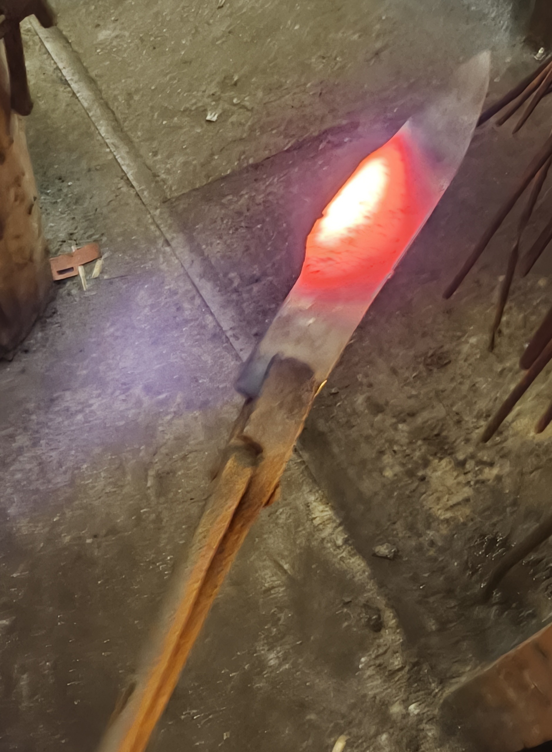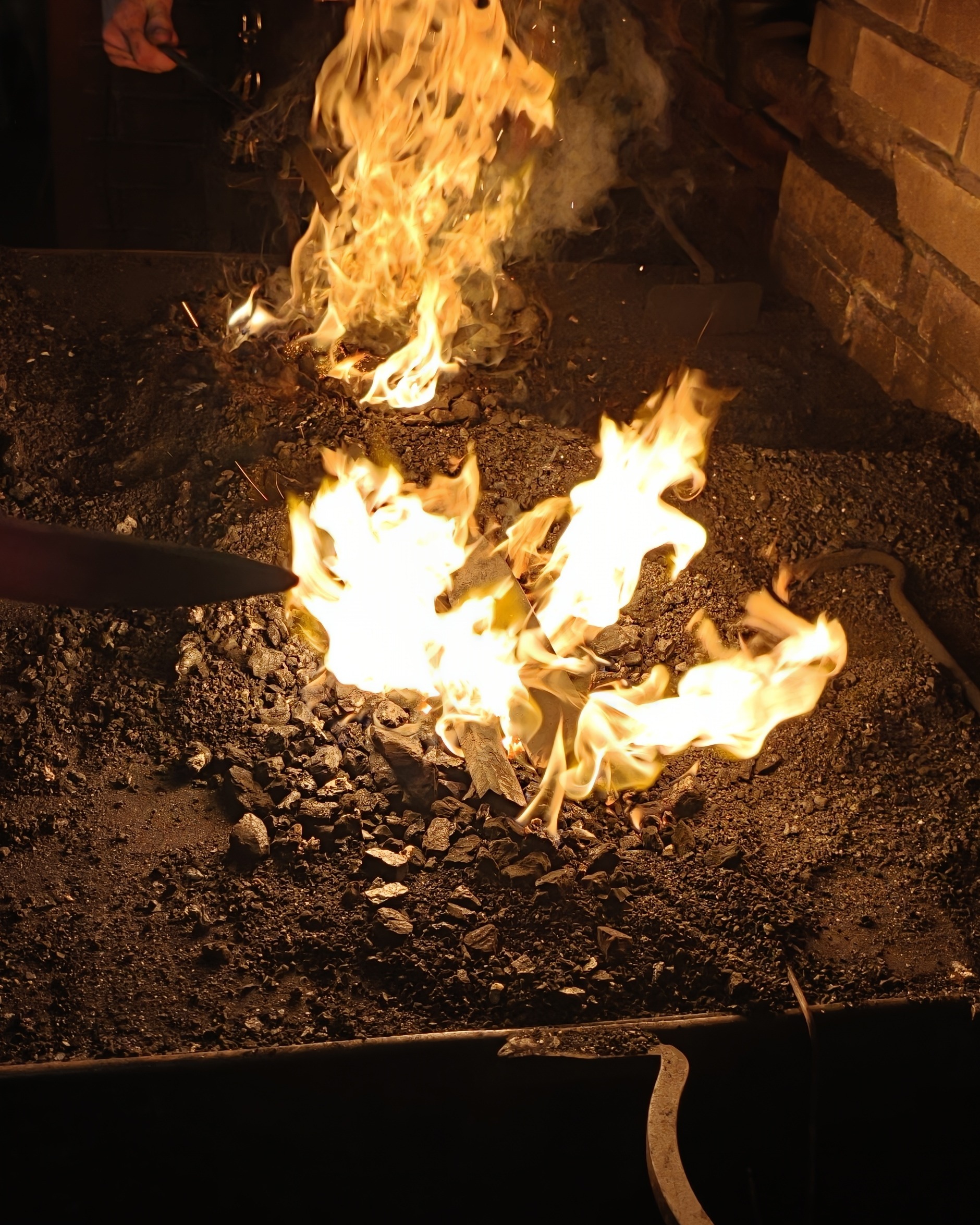 But I practiced the hammer hits, and started understanding better how the hot iron behaved. Also, how to work the coal forge. The master explained which part to keep clear of the coal, the sizes of coal nuggets to use, which ones release more sulfur, and how to control the air flow.