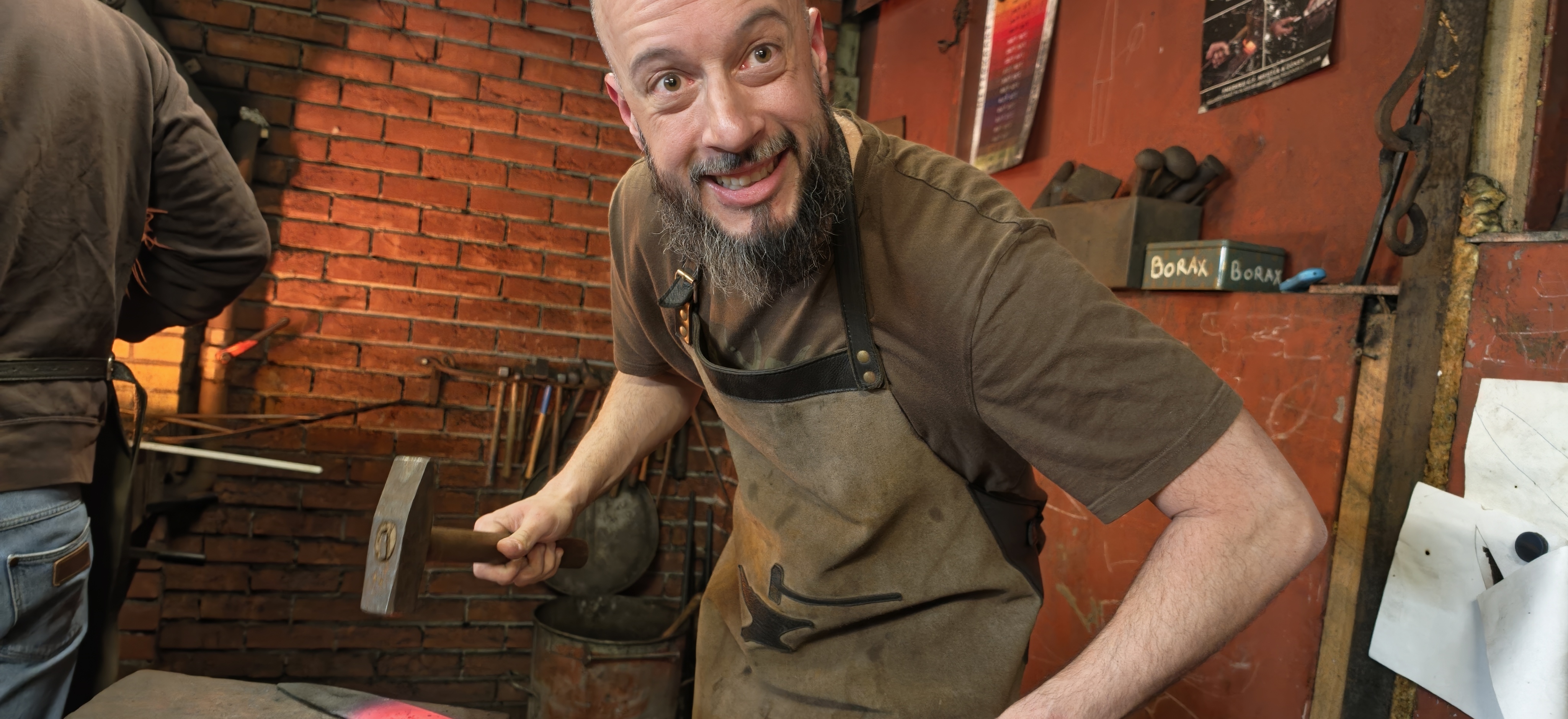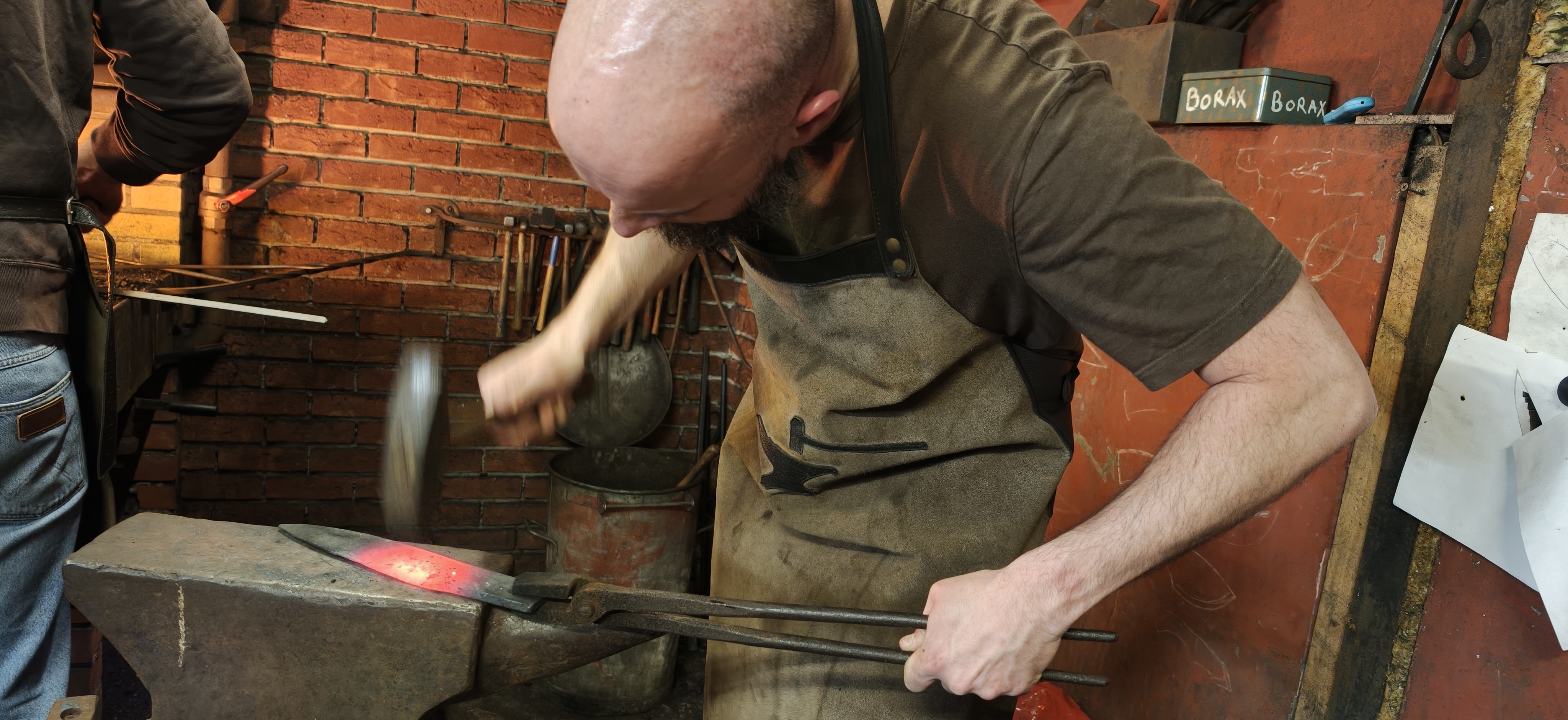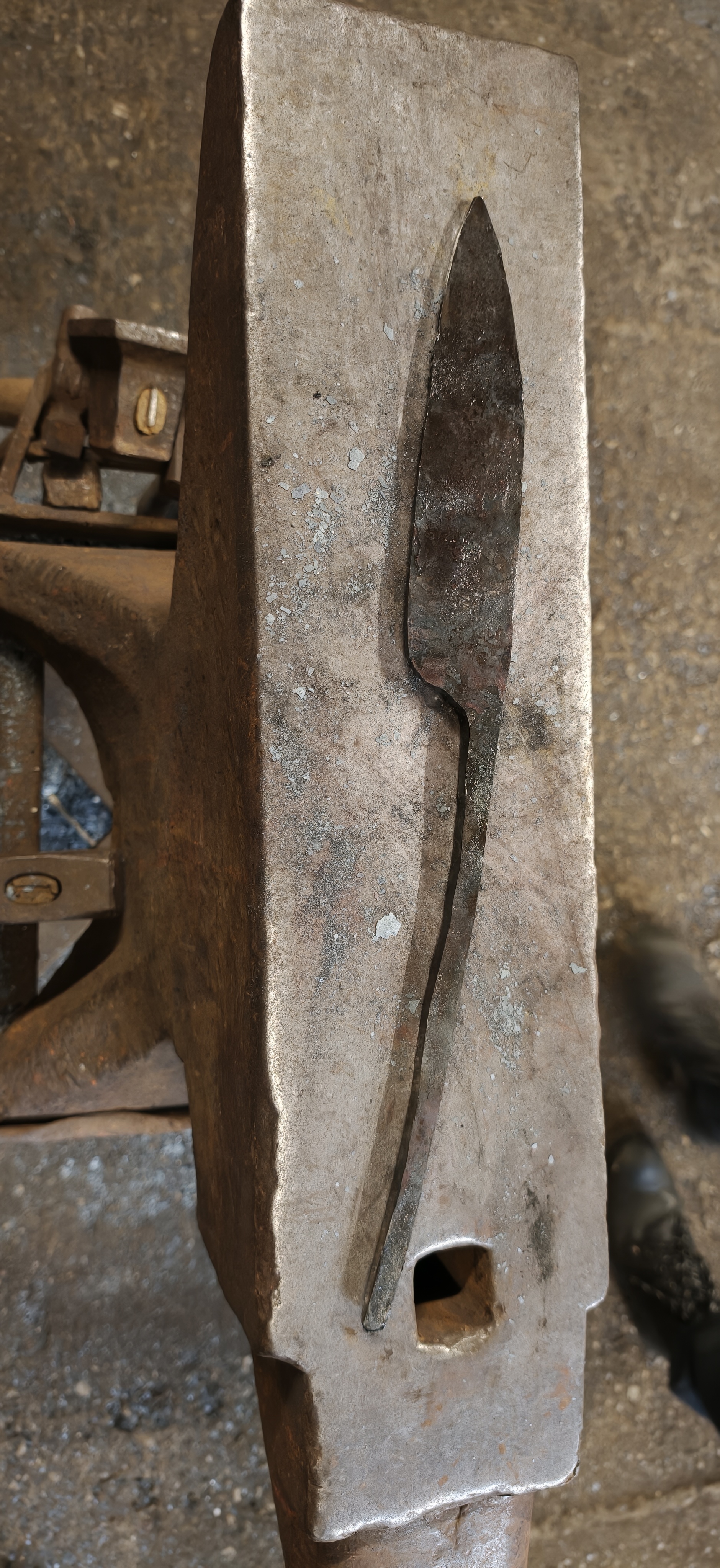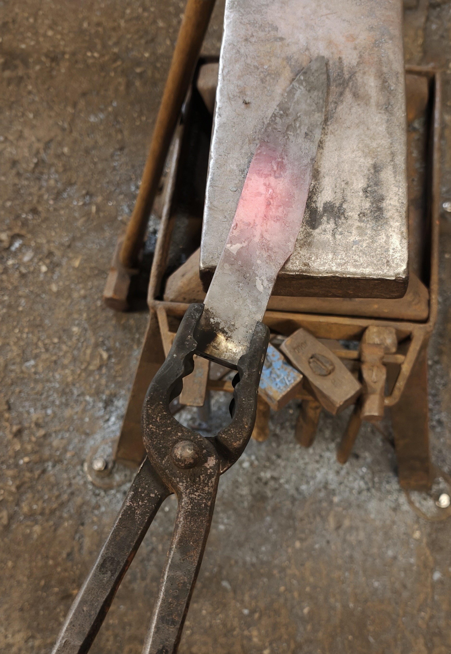 It was quite crowded, so I did not use it much. But one of the masters remarked that I would need a lot of hammering for my type of knife and encouraged me to give it a go.